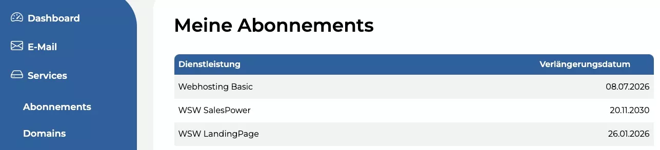 f) Worldsoft Webmaster: Wenn Sie ein Partner von Worldsoft sind, finden Sie hier eine Liste Ihrer aktiven Kunden. Klicken Sie auf "Einloggen" um eine Liste der Domains Ihrer Kunden und einen direkten Link zur Website-Administration zu erhalten.
