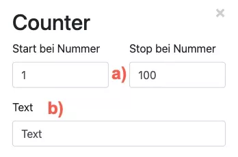 f) Definieren Sie die Geschwindigkeit in der die Zahlen nach oben gezählt werden sollen.