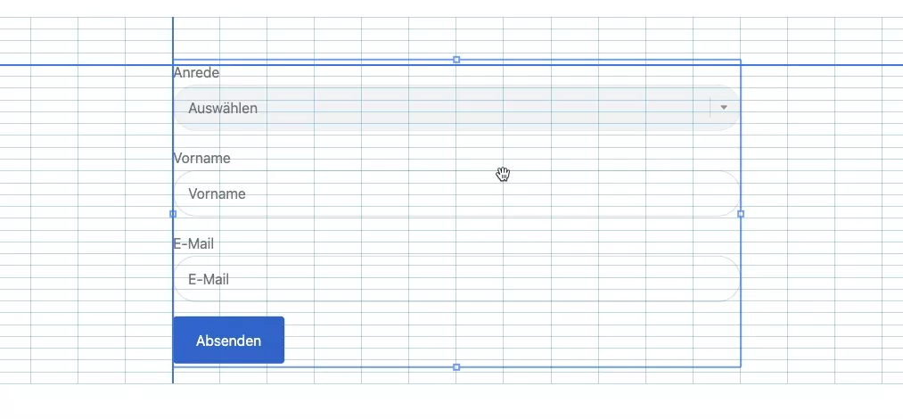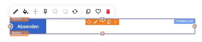 Wenn Sie in das Element klicken, werden Ihnen die Design-Einstellungen des Formulars angezeigt. Sie können nun neue Felder einfügen.