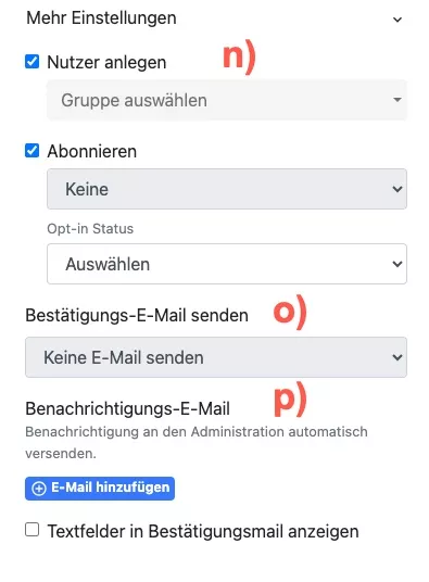 a) Sie können wie auch bei Sektionen neue "Reihen" in das Formular einfügen. Wenn Sie z.B. zwei Felder nebeneinander und anschliessend wieder nur ein Feld einfügen möchten, müssten Sie Reihen nutzen.