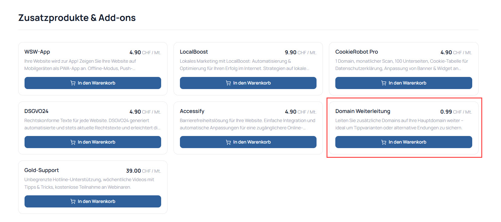Wählen Sie das gewünschte Paket und klicken Sie auf "In den Warenkorb