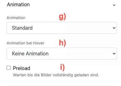 h) Neben der normalen Animation können Sie auch eine Animation definieren welche beim überfahren des Bildes dargestellt wrid.